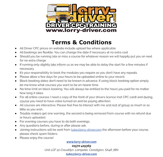 NOTE; In no way a Driver CPC course and the hour won’t count towards your Driver CPC